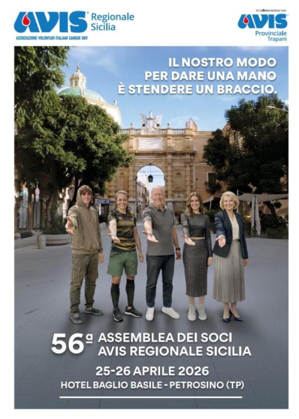 Unisciti a noi il 25-26 aprile 2026 a Petrosino per la 56ª Assemblea di AVIS Sicilia! Scopri insieme a noi strategie per il futuro e coinvolgi i giovani! 🌟❤️ #Donazione